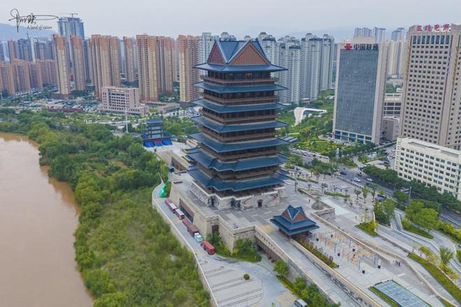 在黄褐色的河畔,一座古色古香的楼阁吸引了我的目光,我立刻飞驰过去进行了一番观察。原来,这竟是兰州市极具代表性的历史地标之一——黄河楼。尽管其规模并不宏大,但内部设有展览馆、文化交流中心等设施,并且定期举办各类文化艺术活动,它不仅是一个集文化展示、观光、旅游、游乐、饮食、民俗体验和休闲等多重功能于一体的场所,而且在2021年荣获了国家AAA级景区的称号。