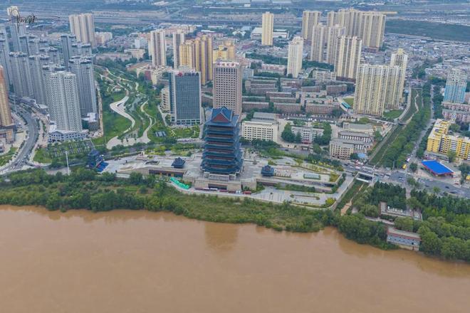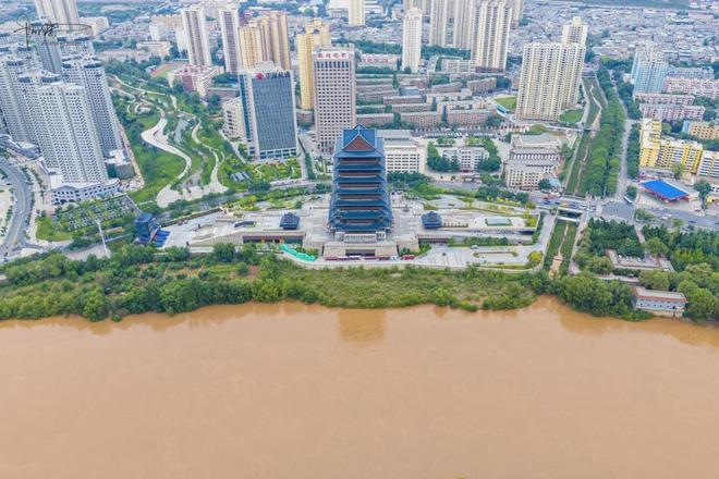 黄河楼位于眼前,实为2019年所重建,其投资总额高达近四亿元(具体约为39907.8万元)。此楼紧邻兰州老街,南部与南滨河路相邻,北部则直面黄河。它隔河与北滨河路旁的华夏人文始祖园以及银滩湿地公园遥相呼应,早已成为市民和游客心目中的休闲乐园以及热门的观光地。