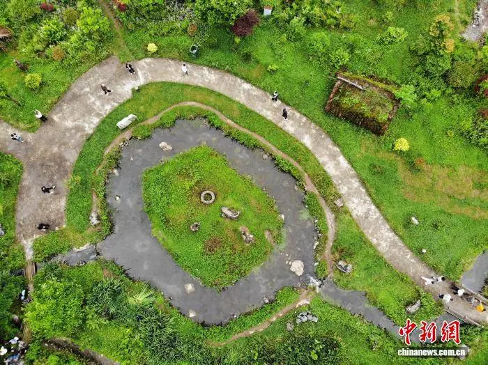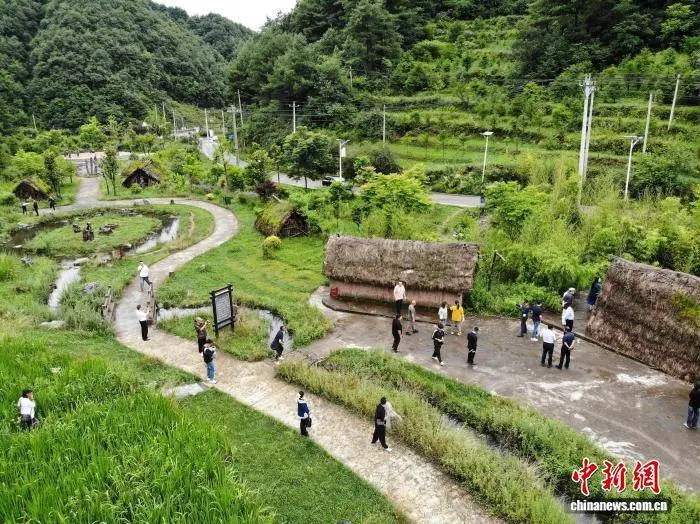 这幅画面捕捉了7月24日的景象,空中镜头展示了游客在贵州省毕节市赫章县海雀村复原区的参观场景。摄影者为石小杰。