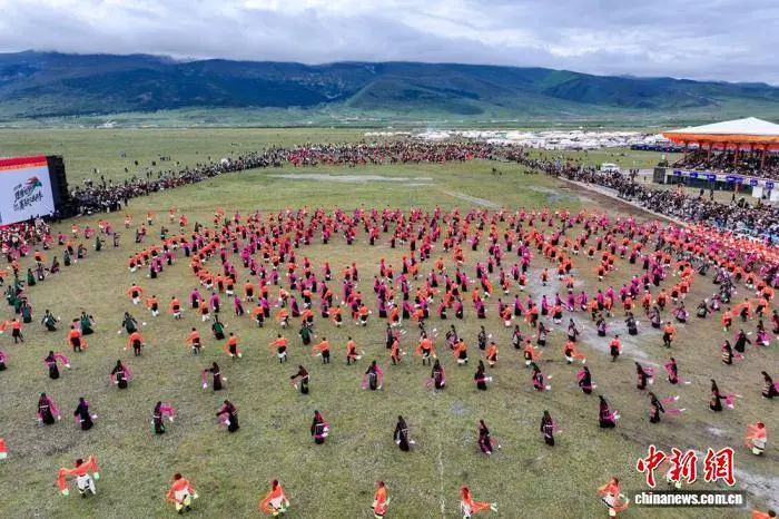 理塘县毛垭草原上的千人锅庄。记者刘忠俊摄