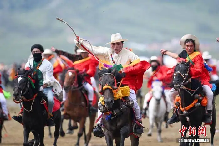 7月30日,在四川省甘孜藏族自治州理塘县毛垭草原,2025年理塘首届“哒野”赛马文化旅游季盛大启幕。众多游客及当地居民齐聚一堂,共同参与了这场高原上的赛马盛会。他们沉浸在马蹄的节奏与欢快的歌声中,体验着理塘独有的民族风情。