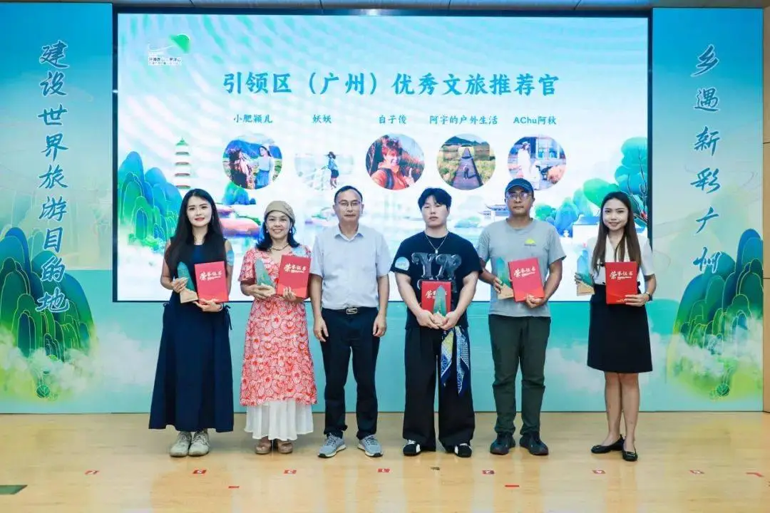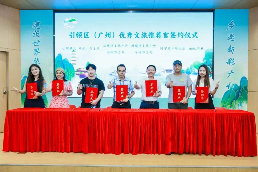 在活动现场,抖音上拥有百万粉丝的旅游博主“陈老师的vlog”以及其他10位文旅推荐官一同亮相,他们荣获了广州地区旅游景区协会颁发的“环南昆山—罗浮山县镇村高质量发展引领区(广州)优秀文旅推荐官”荣誉证书。随后,他们与从化区文化广电旅游体育局、增城区文化广电旅游体育局达成了合作意向,并签署了相关协议,旨在共同利用新媒体平台,对引领区的文旅资源进行深度推广和引领。他们将成为讲述广州故事、传递引领区声音的关键新生力量,并会不断通过创作来展现这片土地的生态之秀、文化之韵和发展的强劲势头。