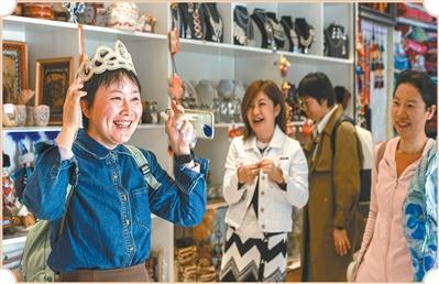 在位于新疆阿图什市的克州民俗风情园内,游客们欣赏完精彩的玛纳斯表演,纷纷挑选起具有民族特色的服饰。新华社摄影记者王菲记录下了这一幕。