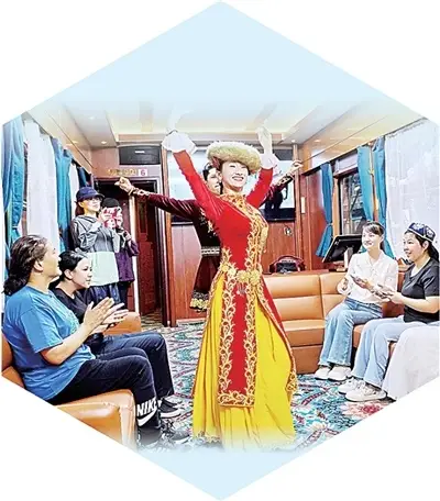 朱燕表示,列车上的文化活动内容丰富多样,包括唱歌、跳舞等,更有旅客身着民族服饰,亲身感受表演的乐趣。