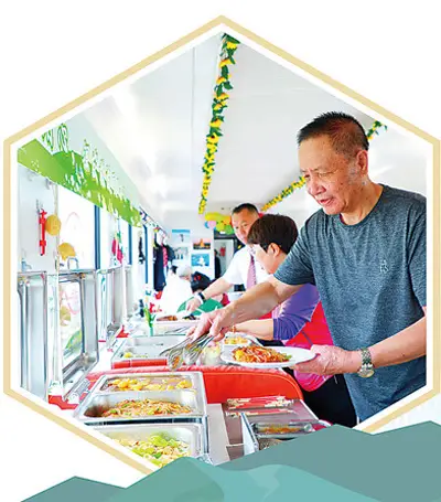“沈铁假日号”上,旅客在自助取餐。 张 雪摄