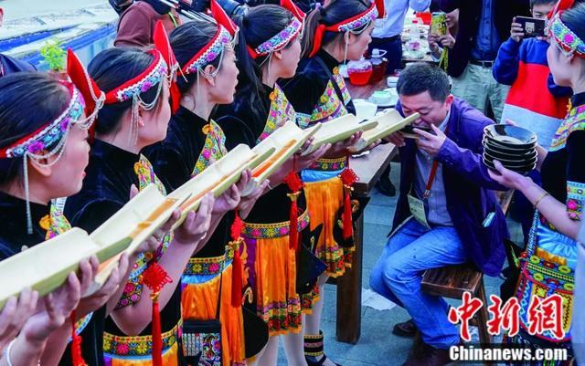 莪山畲族乡龙峰民族村举办了“三月三”文化节。现场进行了敬酒仪式。桐庐县委宣传部提供了相关图片。