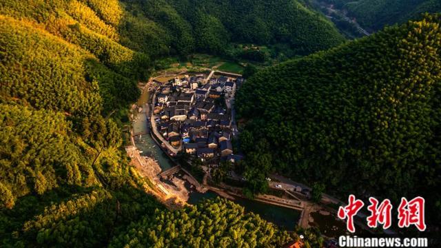 在富春江的幽深腹地,石舍村覆盖着超过九成的茂密森林。晨曦轻洒在青石铺就的小径上,溪畔洗衣的村民身影与远山相映成趣,无人机在林间穿梭时惊飞的白鹭,宛如黄公望画作中“留白”处飘渺的云霞。
