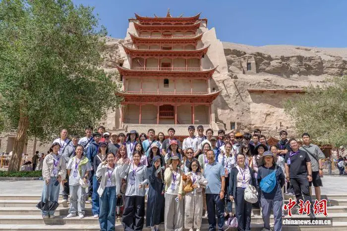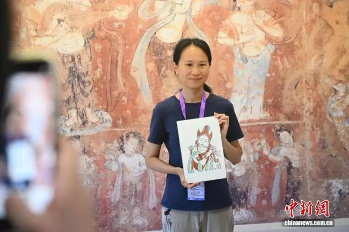 8月1日,甘肃省敦煌市的莫高学堂迎来了两岸婚生子女暑期研学活动的参与者们,他们纷纷展示了自己精心临摹的敦煌壁画作品。从2025年7月27日至8月2日,以“不负青春,圆梦未来”为主题的中华全国台岛同胞联谊会2025年两岸婚生子女暑期研学活动在甘肃展开,参与者们深入体验了当地深厚的历史文化底蕴和蓬勃发展的产业景象。中新社记者李亚龙现场进行了拍摄。