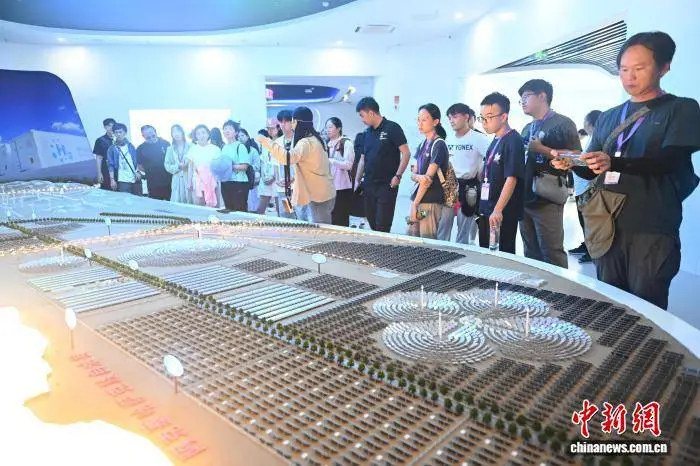 8月1日,在甘肃省敦煌市的敦煌光电博览园,两岸婚生子女的暑期研学活动正在进行。他们在此参观了光伏产业的相关模型。此次拍摄活动由中新社记者李亚龙负责。