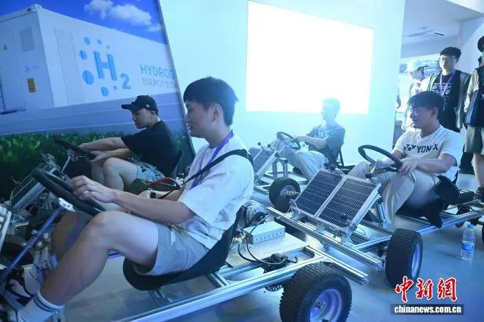 8月1日,在甘肃省敦煌市的敦煌光电博览园,两岸婚生子女的暑期研学活动正在进行中。他们亲身体验了太阳能小车。这一幕,由中新社记者李亚龙拍摄记录。