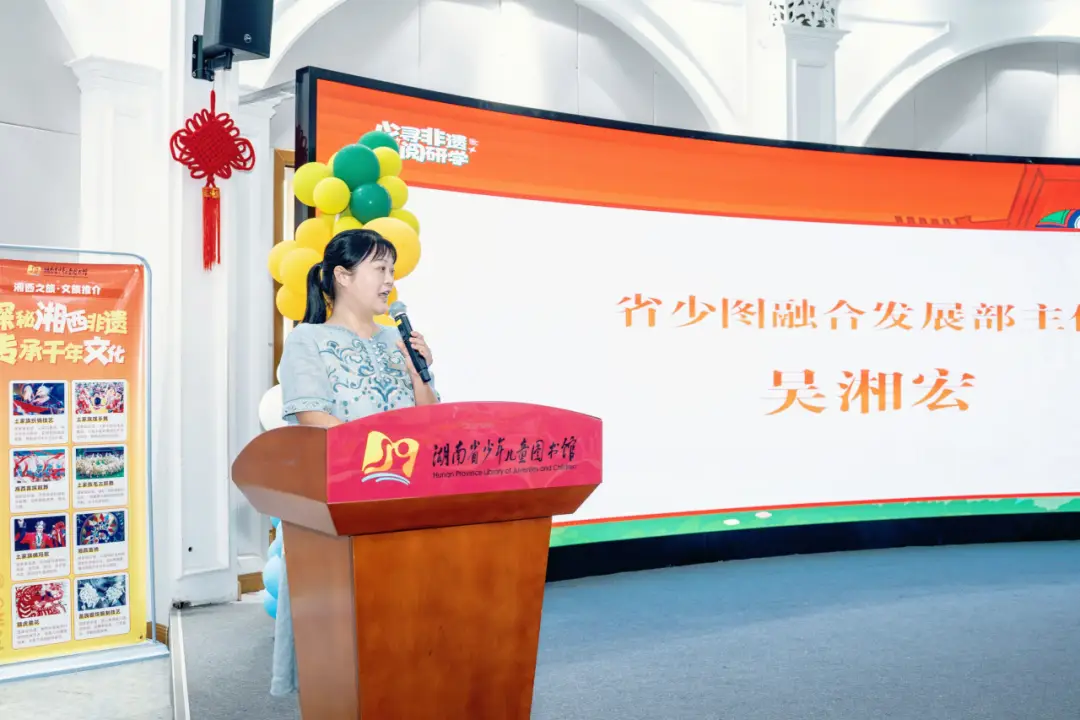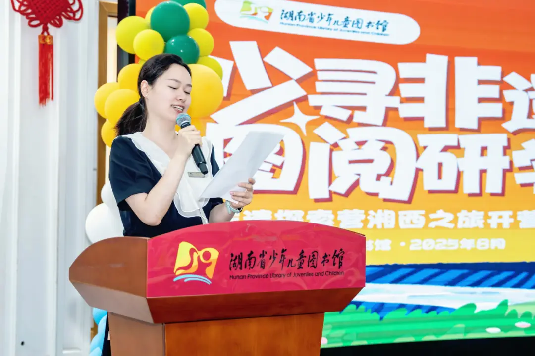 湖南省少年儿童图书馆融合发展部的负责人吴湘宏走上讲台发表了讲话,对在场的学员们充满了厚望。她强调,这是湖南省少年儿童图书馆在“文化+旅游”融合模式上的一次创新尝试,她期望孩子们能够走出书本的局限,通过旅行去感受文化的热度,并从单纯的“阅读者”转变为非物质文化遗产的“传播者”和“传承者”。