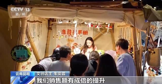 位于昆明市中心的历史文化区域,各式各样的原创设计作品和手工饰品争奇斗艳。在这些摊位中,菌子文创摊位尤为抢眼,其生意之火爆,堪称其中的佼佼者之一。