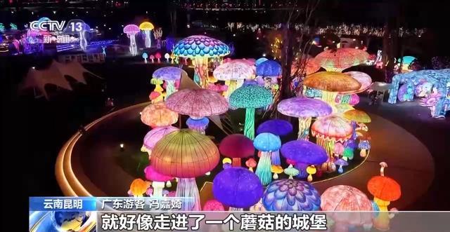 除了种类繁多的文化创意产品,随着夜幕的降临,滇池岸边光影交错的蘑菇形状创意装置,正自发地展现其独特的魅力。