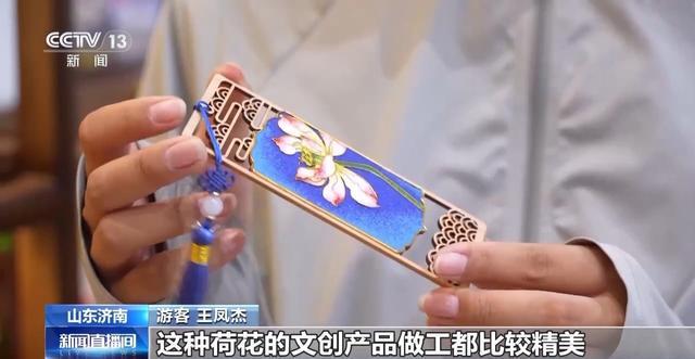 游客王凤杰表示,在百花洲漫步时,他发现众多以荷花为主题的文创产品制作工艺相当精良,同时,他觉得将这些产品带回家中颇具价值,每次看到它们,都会勾起他在济南度过的悠闲时光。
