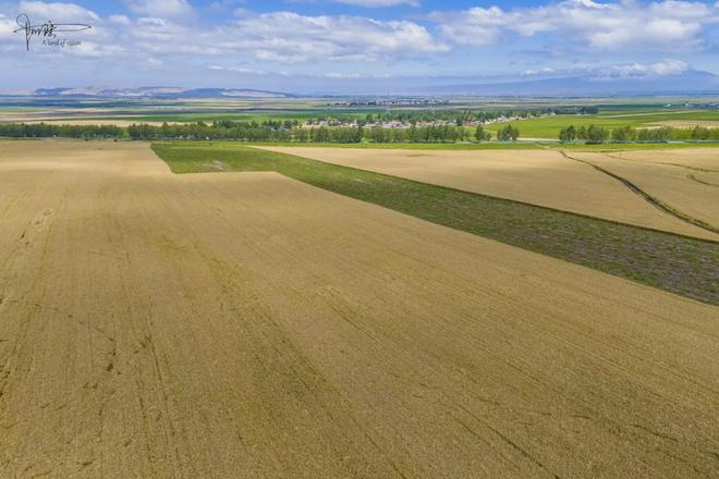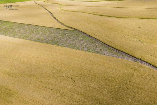 遗憾的是,当我途径此地时已是九月,因此那传说中的广阔油菜花田此刻大多已收割完毕,原本金黄一片的景象,现在却变成了大量黄褐色。所幸,即便只是通过航拍镜头观赏,这景色依旧让人感到十分惊艳和震撼。