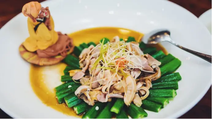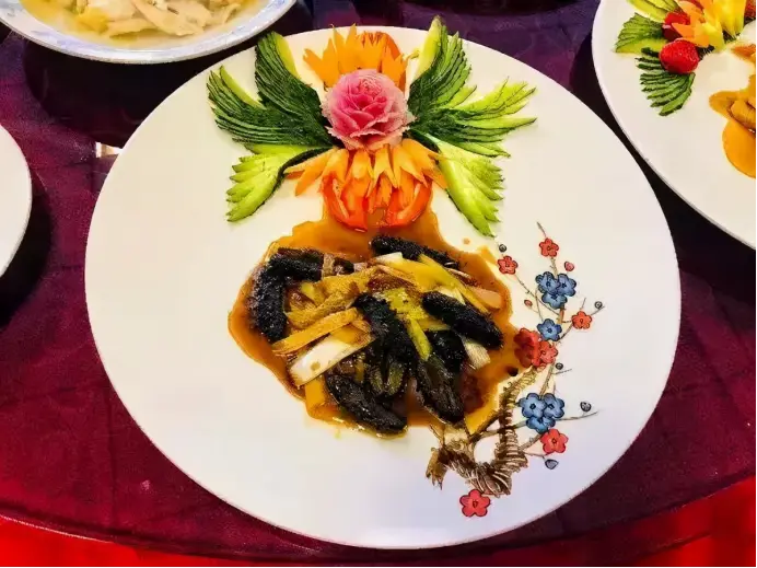 孔府宴的烹饪技艺高超,选材十分讲究,海参等滋补食材的运用尤为纯熟,即便是豆腐、萝卜这样的普通食材,也能烹饪出多种风味。诗礼银杏、论语竹简稿、孔府如意卷、阳关三叠、一品豆腐等佳肴,形态独特,名称文雅,口感浓郁,将饮食与传统文化紧密融合。它们以独特的烹饪技艺和精美的摆盘,仿佛一件件艺术珍品,使食客在享受美食的同时,也能感受到儒家文化的独特韵味。