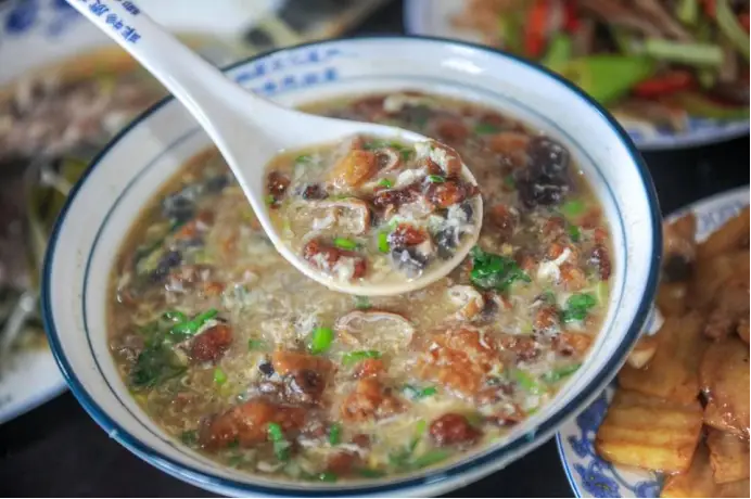 餐桌上陈列着众多博山地区的特色佳肴,清炖丸子口感鲜美,一入口便化;豆腐箱子的馅料种类繁多,外观设计新颖;博山酥锅、博山硬炸肉……这些美味佳肴,唯有在博山才能品尝到最地道的风味。
