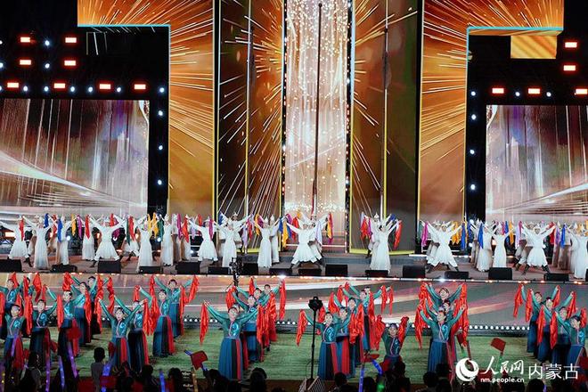 夜色渐浓,银河如幕。国旗方队步入,夜空之中无人机阵列呈现《五星红旗》的图案,自舞台后方徐徐上升。辽阔的格根塔拉草原变为文化交流的舞台,中央表演团队精神抖擞地登场,呈现出民众团结向前的精神风貌。王旭、呼斯楞、乌英嘎、傲日其愣、刘智鹏等艺术家倾注心血,献上精彩表演。《天边》、《草原上升起不落的太阳》以及《骏马赞》的动人旋律同时奏响,现场观众以经久不息的掌声,共同迎来了那达慕盛会的序幕。