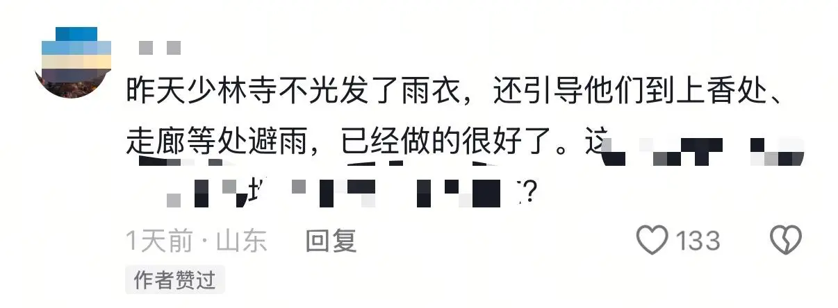 有网友在评论区提出对视频内容的真实性表示怀疑,对此,他的回应是:“我在视频中躲避了大约半个钟头,当时众多游客都在屋檐下躲避雨水,那些僧侣心怀善意,我觉得他们值得点赞!”