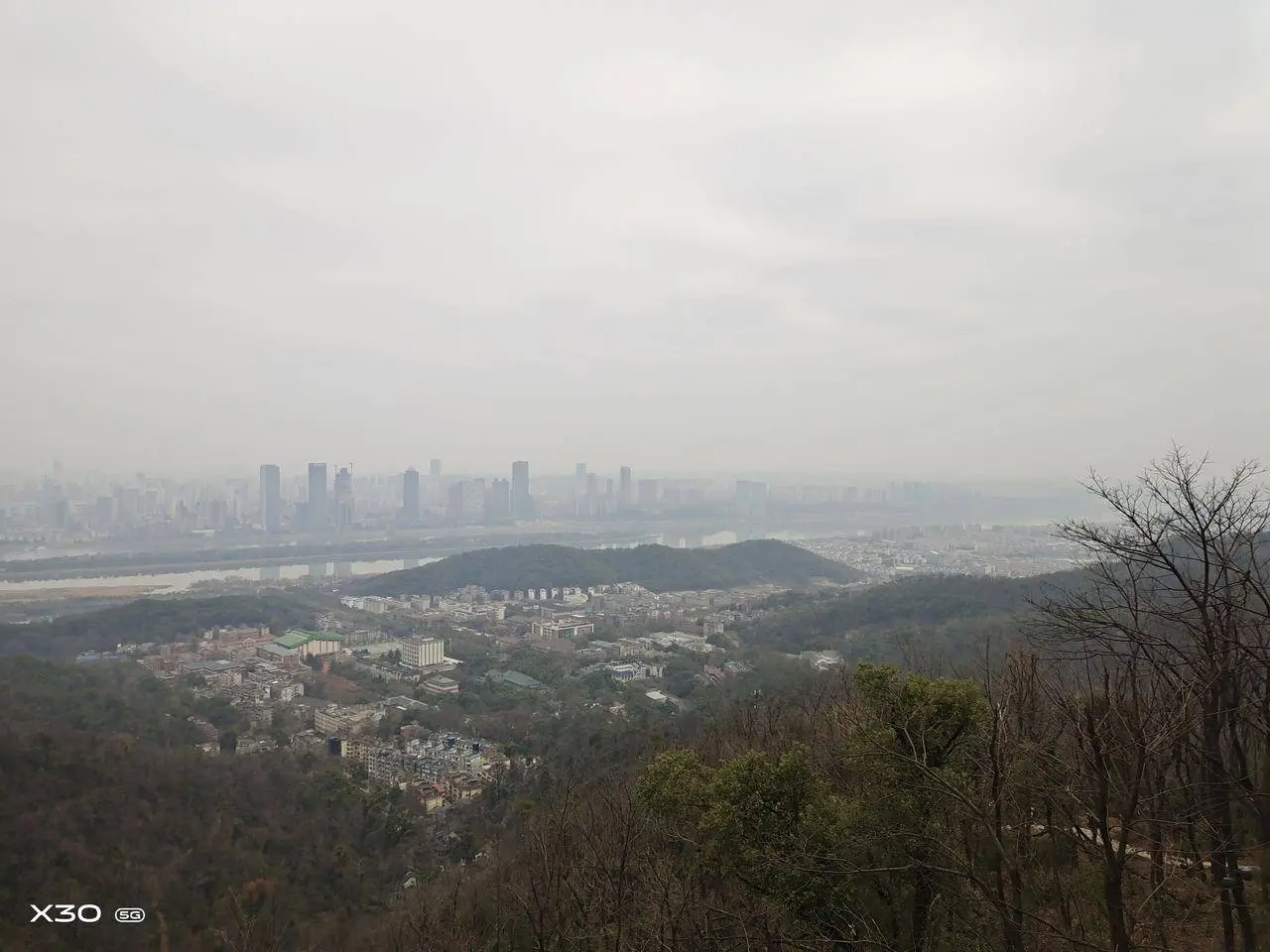 我坚持了一小时后到达山顶,在一个开阔之地拍了照片,隔着湘江,两岸城市一边是高楼大厦,另一边是山脚下人烟稀少,一边仿佛是繁华,另一边仿佛是世外山林,橘子洲成了江上一道痕迹,又好似一块翡翠,在江上蜿蜒成绝美图画。