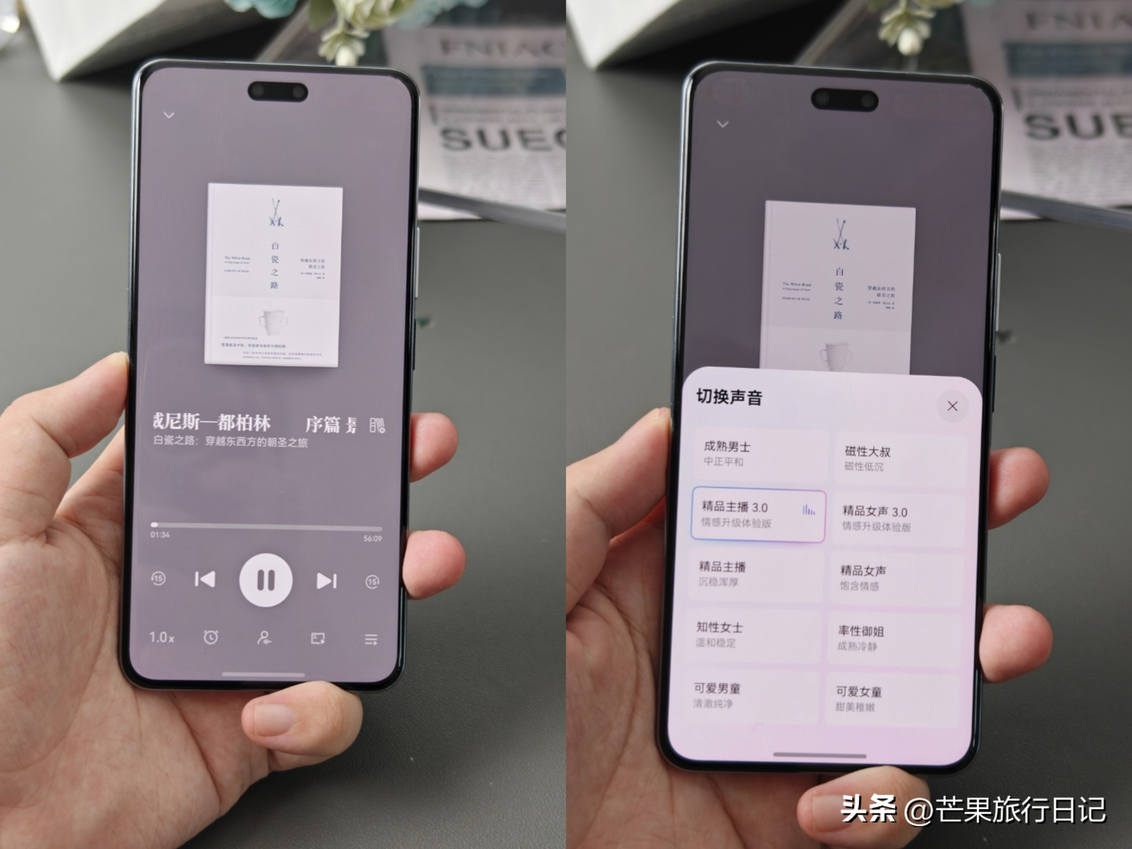 另有一个优质声音3.0版本,对于我这种喜爱边听故事入眠的人相当契合,华为阅读提供的听书声音非常接近真人发音,其中包含自然的停顿和丰富的情感,用户还能挑选多样的声音类型,到底效果如何,亲自体验一番便一目了然!