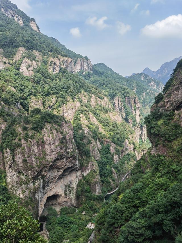 俯瞰雁荡山,深谷下方的人行栈道依稀可见。