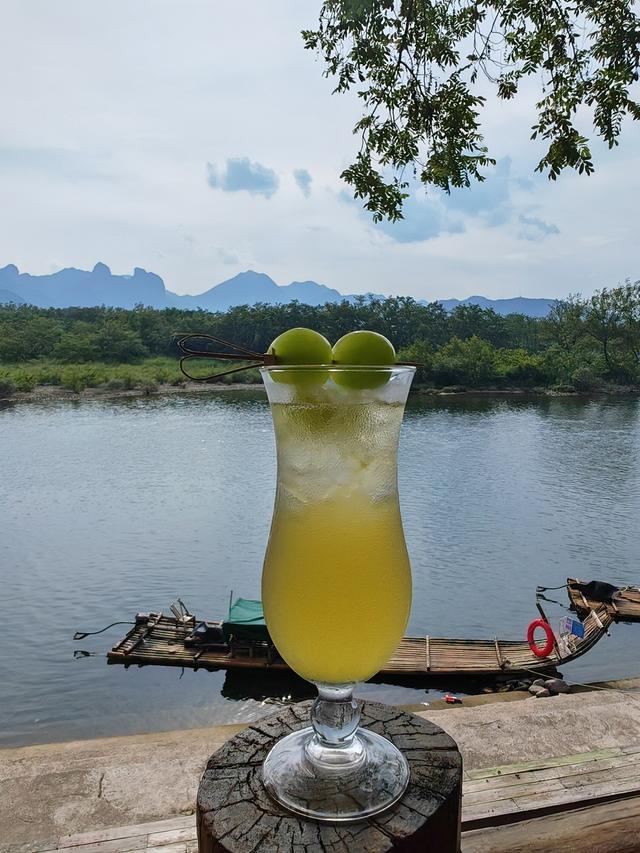 向高铁站方向行进,途中遇见一处漂流区域,旁边可见茶饮店标识,于是选择在此稍作停留再前往高铁站。在茶饮店点购了咖啡饮品,把杯子放置在栏杆旁边,利用溪流、竹筏以及远山作为背景拍照留念,不少摄影人士因此增添了新的拍摄题材。利用这个空档,队伍里操控无人机的人也借助无人机视角前往上游勘察,沿途江水清澈透亮,如同美玉般温润,沿途风光绝佳。