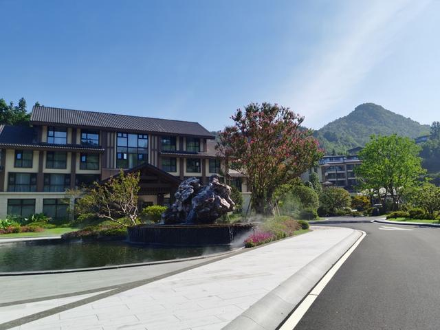 楠溪江鸿居温泉酒店坐落于温泉小镇,酒店后倚山林,大堂前方生长着一棵体型硕大的紫薇树。