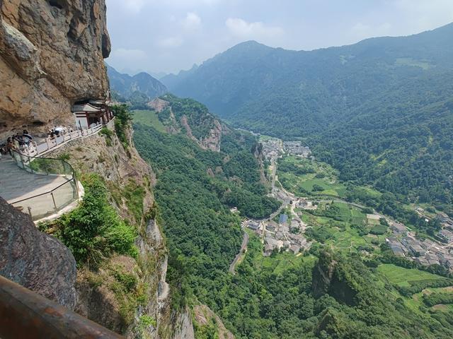 从天空之桥前往灵岩景区的卧云栈道,要攀登好几百层台阶。爬得非常疲惫,气都喘不上来,不过站在高处看到的景色无比优美,确实是“站得高看得远,俯瞰群山壮丽”的宏大场面。