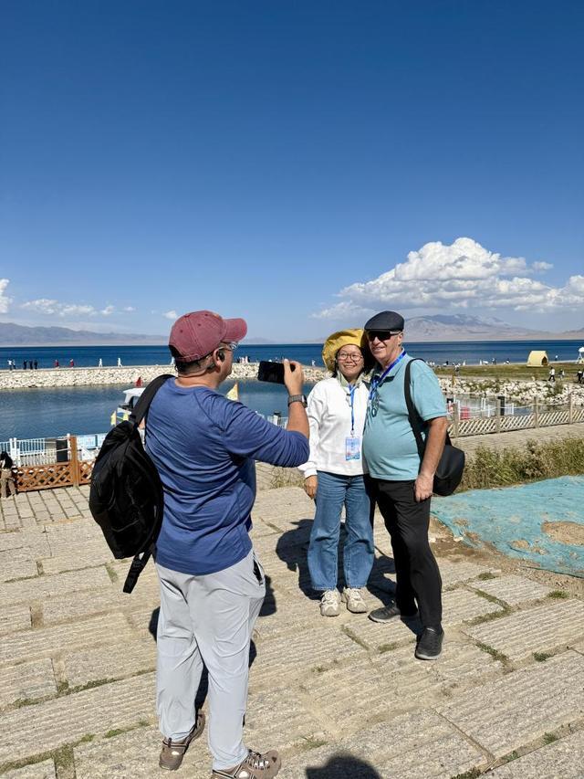 赛里木湖,我们抵达了!8月16日,“精彩新疆·丝路有约”主题活动开展到第三天,一个由国际博主和各省区市国际传播中心记者组成的团队,来到了位于博尔塔拉蒙古自治州的赛里木湖,他们想要了解这座高山湖泊的美丽景色,探索其生态系统的奥秘,以及感受当地的文化旅游魅力。