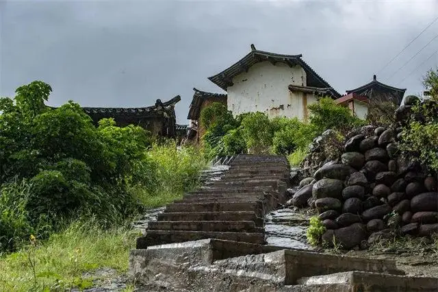 这座古村落顺应山势而建,坐落于一条河流的谷地之中,若从峰顶向下望去,地势的起伏形成了壮丽的视野,令人顿感心胸开阔。目光投向整个村落,那些古老的房屋显得韵味十足,使人无法分辨岁月的痕迹;村子的旁边分布着水田、果园以及青翠的山峦和清澈的河流,处处流露出与世无争的宁静。