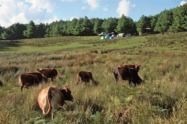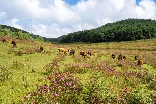九天湿地位于云南省中部,是当地规模最大的高山湿地,其自然景观独具特色,包括清澈流淌的小溪,散发着芬芳的野花,以及在草地上自由活动的牛羊,共同构成了一幅“天空辽阔,原野广袤,风吹草动时能看见奔跑的牛羊”的雄浑丰饶之图景。
