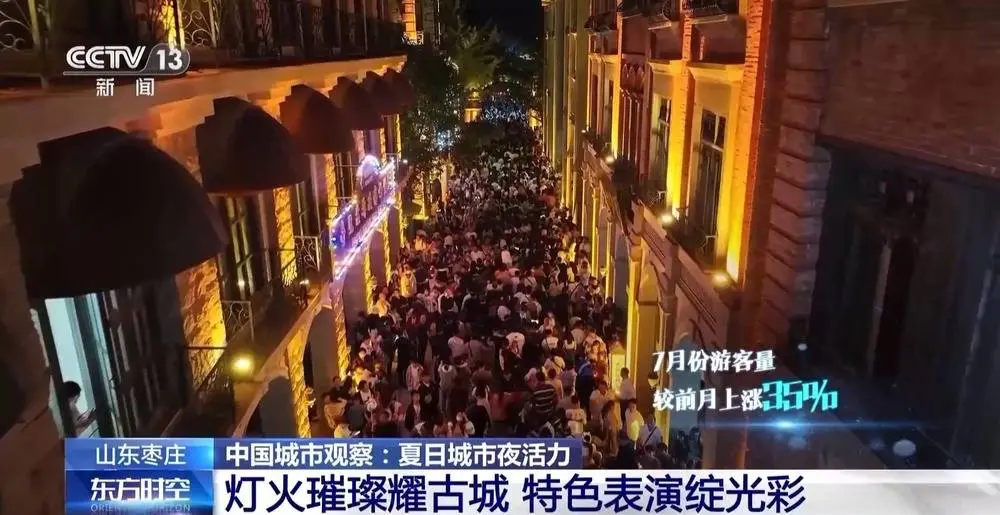 广场上,精彩绝伦的“火龙钢花”表演赢得观众阵阵掌声,炽热的铁水向空中迸发,将夜幕映照得流光溢彩;山东快书、鲁南皮影、苏北大鼓等传统艺术轮番登场,各具特色。今年夏天,各式各样的活动显著提升了古城的吸引力,7月份的游客数量比上个月激增了35%。