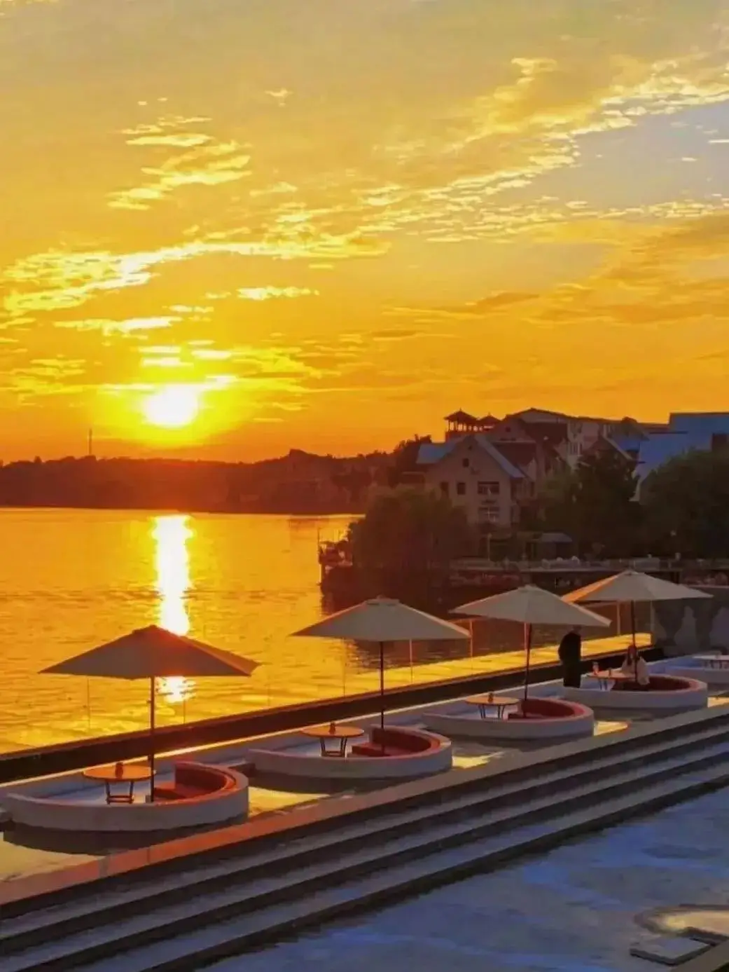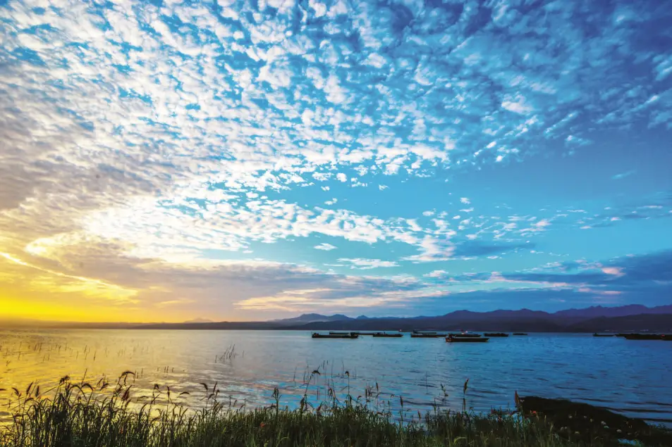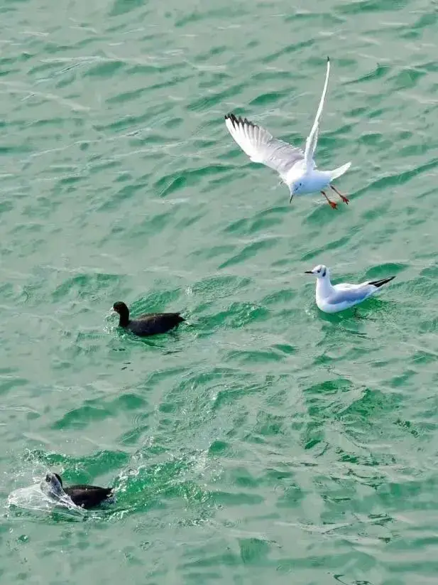 静坐观云,云似镜;观波,波似云。时有飞鸟点水,荡开轻柔的波纹,使人重获难得的安逸。