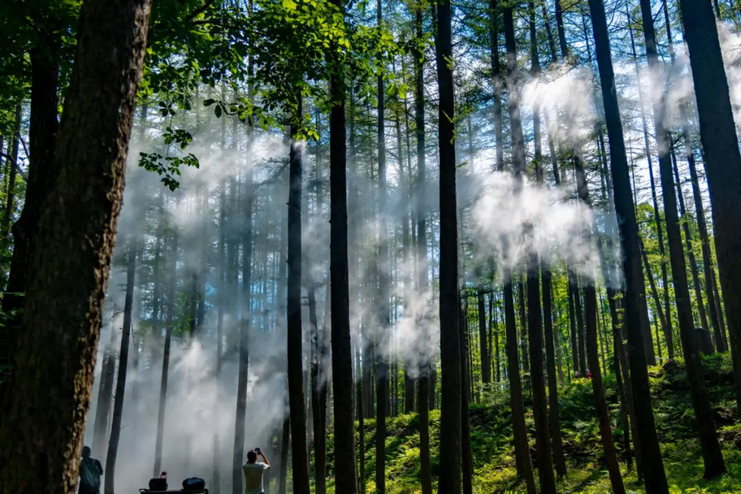 目光投向远方的山岭,青翠欲滴,耳边传来松林间的风声,仿佛在低语歌唱。此地,光阴似乎被山间的雾气打碎,接着又慢慢复原。