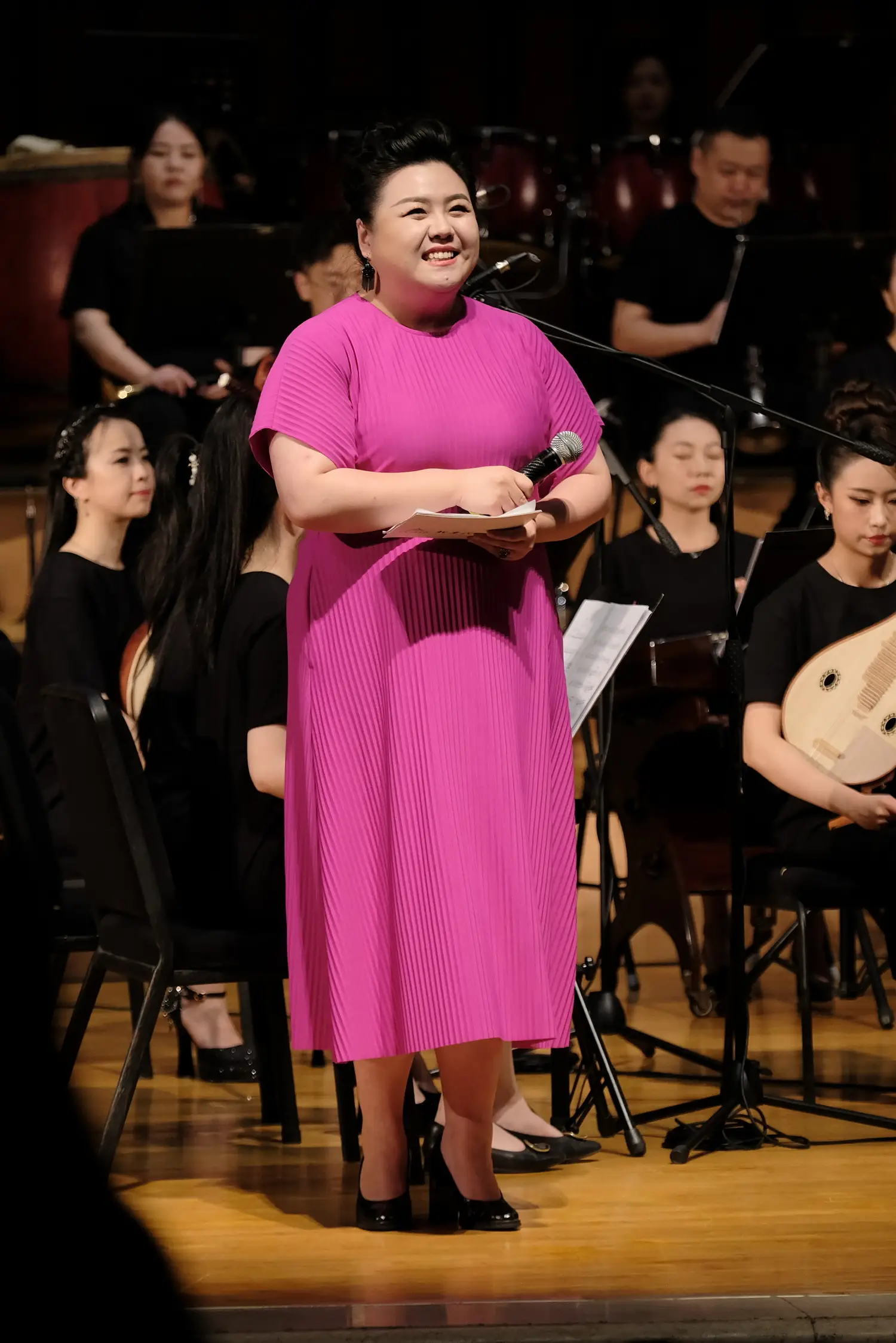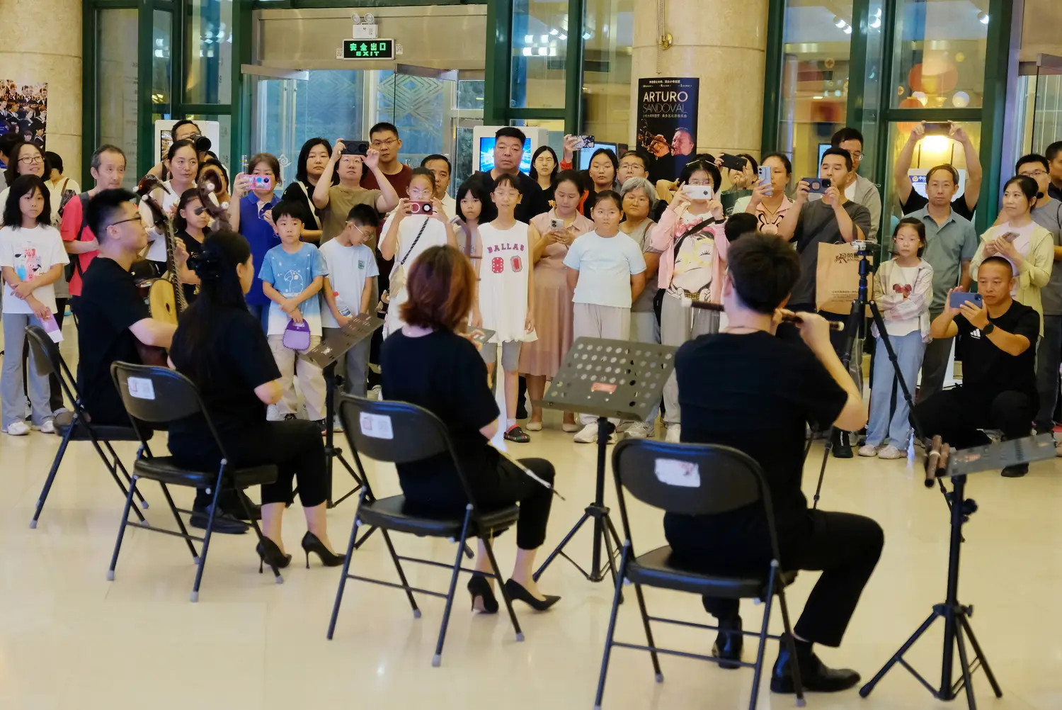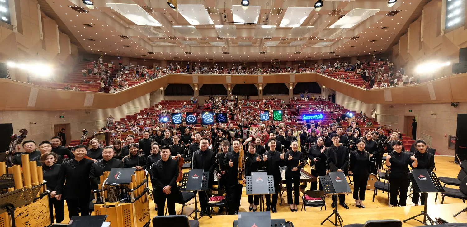 表演结束,观众们同时举起手机,在璀璨的灯光下,北京民族乐团的演奏者与大家一同高呼“二零二六开启艺术之门,再会!”,共同憧憬下一次的艺术盛会。