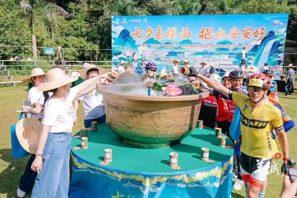 花都梯面镇举办第三届七夕玉露节,这是一场融合文化延续、民俗参与、自然观光的夏日庆典,场面热烈非凡。开幕式期间,穿着客家传统衣裳的居民们手捧新摘的柳条,通过“散播甘露”的古老习俗,向到场的客人表达美好祝愿。