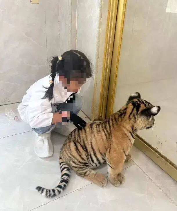冯女士的女儿和小老虎 图片来源:极目新闻