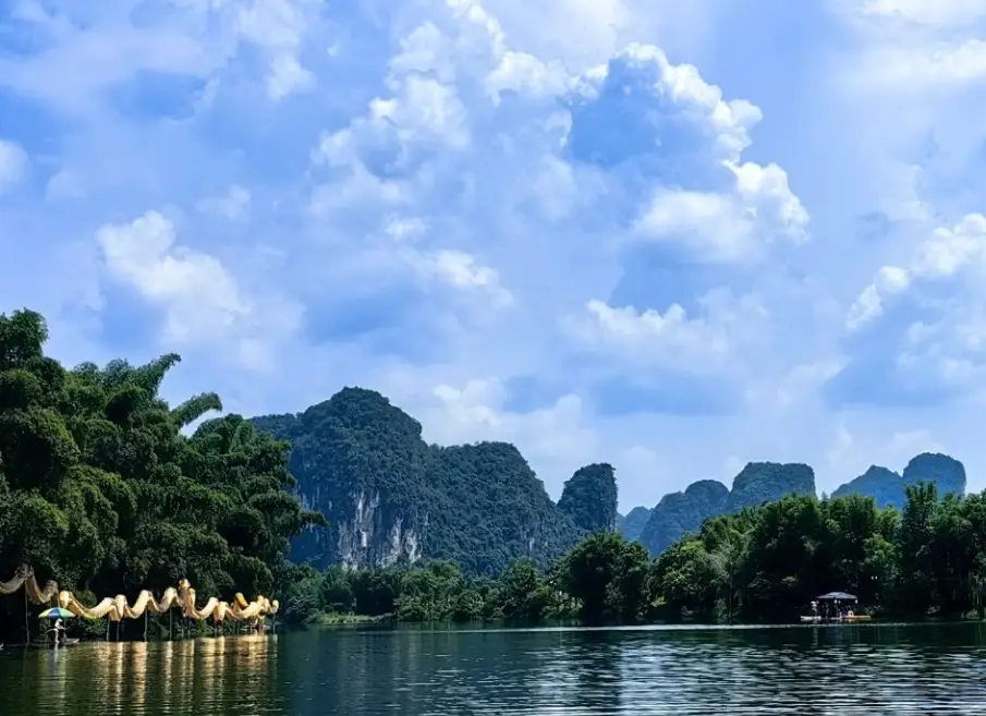 奇闻异事:遇龙河的水之所以“能闪耀光芒”,是因为河底铺满圆润的石头,太阳光照射时会产生“丁达尔现象”,特别是在雨后,水面仿佛撒满了细小的镜片。我询问划船的人为何不戴深色眼镜,他笑着回答“戴上就难以看清水中的鱼儿”——原来当地居民早已将光亮变化当作“捕捞提示”。