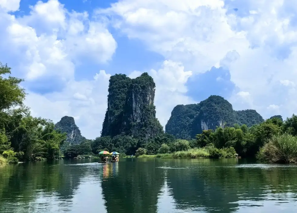 遇龙河的竹筏是了解桂林景致光影的绝佳选择,我经过三天时间,实地考察了各个河段,最终确认“金龙桥 - 旧县段”才是真正的精华所在,这一段全程六公里,完全听不到机动船发出的任何声响,竹筏在水面划行时,船桨拨动水面产生的波纹会将阳光反射成点点星光,清晨九点乘坐竹筏最为理想,当时薄雾尚未完全消散,远处的青山仿佛披着轻柔的纱巾,阳光穿透雾气照射在水面上,连竹筏投下的影子都显得格外柔和。