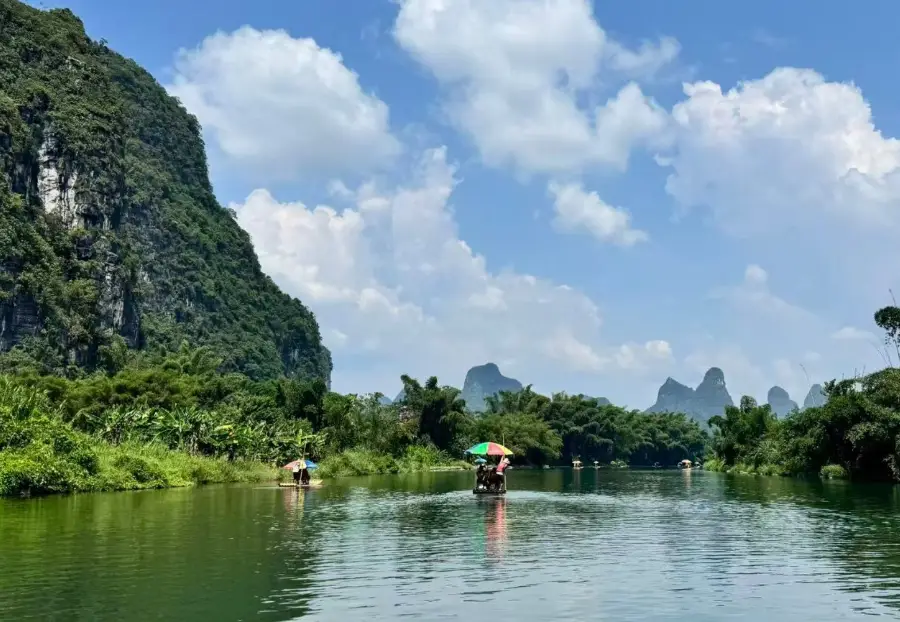 挑选座位的方法:乘坐竹筏应选择“左边”!从杨堤顺流到兴坪时,左边可以直接欣赏落日,下午的景致都在这边。搭乘大船则需选“二层甲板靠前的位置”,这样视线不会被阻挡,不过风会比较大,最好备一件轻便的外套。我曾目睹有人为争夺佳位而口角,其实完全没有必要——漓江的景色每五分钟就会变换,各个角度都能发现美好。