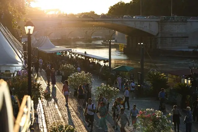 现在的台伯河,不再承担古罗马时代军事与商业的职责。偶尔有船只划过水面,也有桨板爱好者在河中嬉戏,岸边时常可见骑行者与散步者,到了夏天,夜市也热闹非凡,这些景象都在默默见证着它和罗马长久的共存。