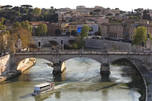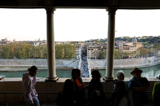 人们从意大利罗马的 圣天使堡俯瞰台伯河
