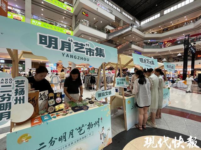 互动环节场面火爆,各种游戏如“嫦娥奔月”“趣味足球”等,引得众多市民热情加入。明月“艺”市集上,集中呈现了广陵手绘地图、渔业文化衍生品、传统剪纸技艺以及“冒险团子”毛绒公仔等,这些产品都饱含扬州特色,让扬州的历史文化变得可以触摸、可以体验、可以珍藏。