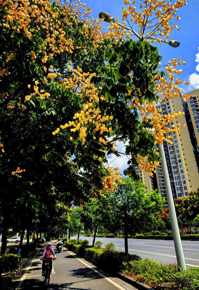 在阳光照射下,桂林临桂区洋田路上的栾树摇曳生姿。李腾钊摄