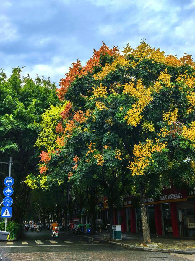 桂林秋色由栾树拉开序幕,绚丽多彩引市民游客驻足欣赏