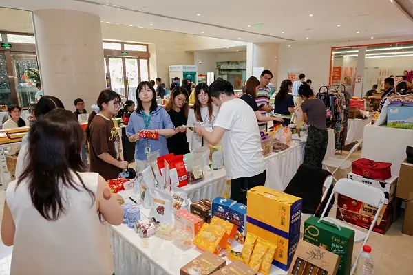 展馆里面,十多家摊位展示了当地当季的农产品,包括红枣、纸皮核桃、吐鲁番葡萄干等,都是直接从产地进货。“网上看图片总是觉得不靠谱,这里可以亲手挑选,价格也很划算,买得放心!”市民陈阿姨提着刚买的喀什灰枣,笑着对同伴说,现场经常有市民停下来挑选商品,让“在家附近逛喀什集市”成为了可能。