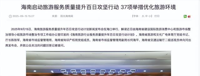【环球网财经综合报道】9月15日,在海口市举行了海南省旅游服务质量提升年百日攻坚行动计划发布会。目的是全面提高旅游服务水准,解决游客的关心问题。海南省从9月8日开始,到12月18日,将实施旅游服务质量提升年百日攻坚行动。行动将按照十个方面进行,制定了许多关键任务。通过多种方法一起努力,促进旅游服务整体进步。