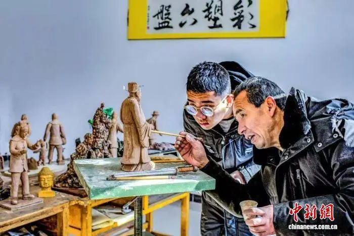 在幽深的老巷尽头,一块标示着“国家级非物质文化遗产——杨氏彩塑传承基地”的匾额,在阳光下闪耀着柔和而引人注目的光芒,无声地展现着这门手艺的深厚内涵。步入其中,匠人静坐于工作台旁,神情全神贯注得如同与外界隔绝,只有手指和泥土的接触,在安静中描摹出作品的节奏感。