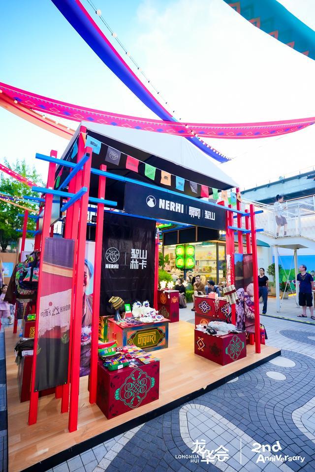 龙华寺是千年古刹,龙华会是它旁边首个商业综合体,现在已经运营三年了,以民族特色和非物质文化遗产为核心,今年周年庆期间,他们创新推出了上海首个以“圣山”IP为主题的藏风市集,邀请上海市民和游客去体验藏地文化。主办方表示,这次“龙华秋会”汇聚了二十多家源自藏地及少数民族的原创手工艺品牌和知识产权,着力展现纯正的民族工艺特色,确保每个展位都成为了解藏地文化的窗口。